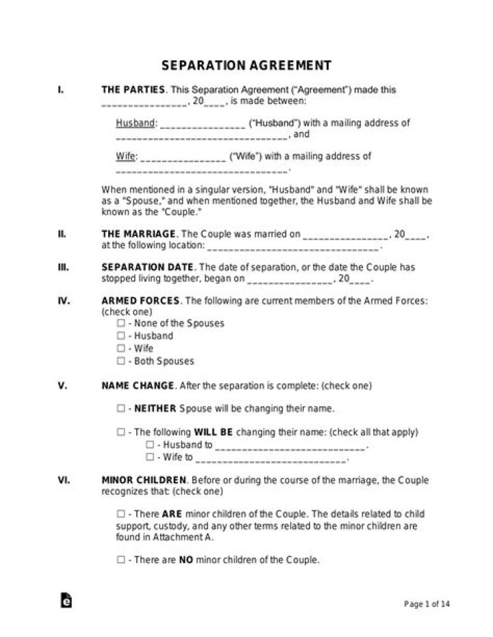 What should be included in a separation agreement?