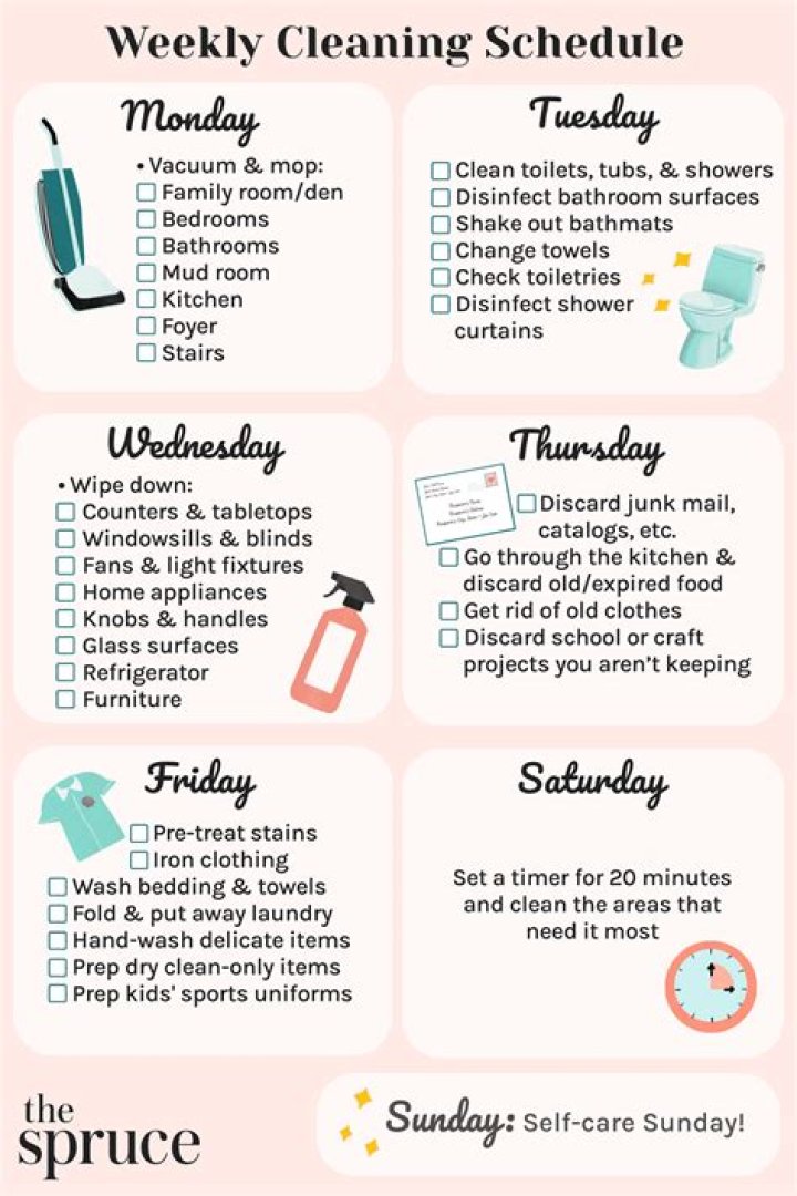 - Cleaning the kitchen, including wiping down appliances, counters, sinks and cabinet doors.