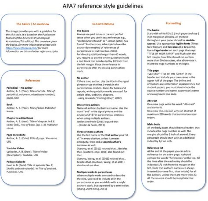 When using APA format, follow the author-date method of in-text citation. This means that the author’s last name and the year of publication for the source should appear in the text, like, for example, (Jones, 1998). One complete reference for each source should appear in the reference list at the end of the paper.