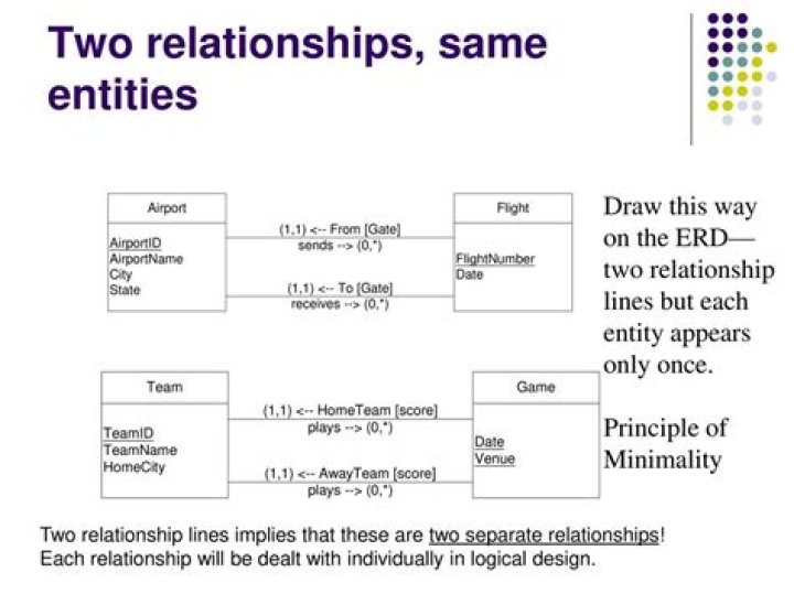 There can be a number of different relationships between the same two entities. For example: Employee is assigned to a Project, One entity can participate in a number of different relationships involving different entities.