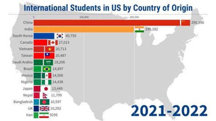 By 2017, the U.S, U.K., Canada and Australia received 40% of international students. The U.S. counted 1.2 million in 2018. Australia had nearly 1.3 million in 2017….Destinations of foreign students.