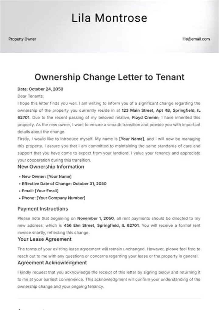 How do I inform tenants of new ownership?