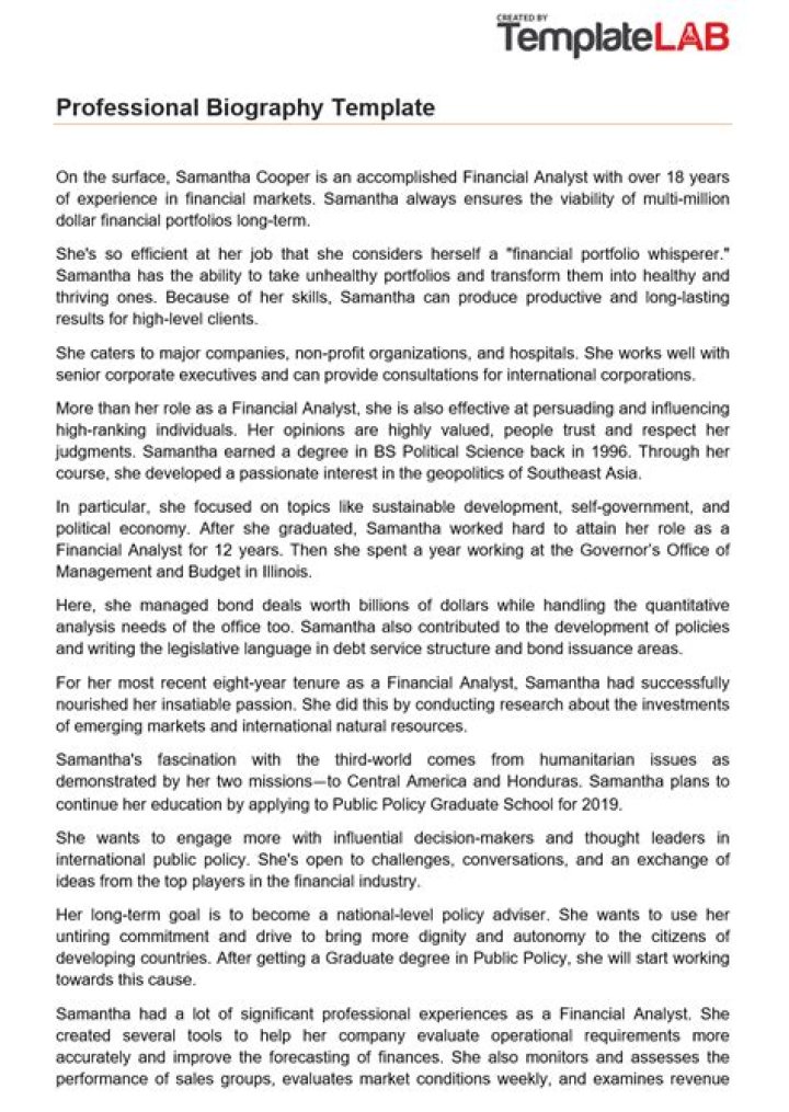 How to Write a Professional BioYour name.Your current role or professional tagline.Your company or personal brand.Your goals and aspirations.Your 2-3 most impressive and relevant achievements.One quirky fact about you (if it’s appropriate to the site)What to Include in a Bio at Work.