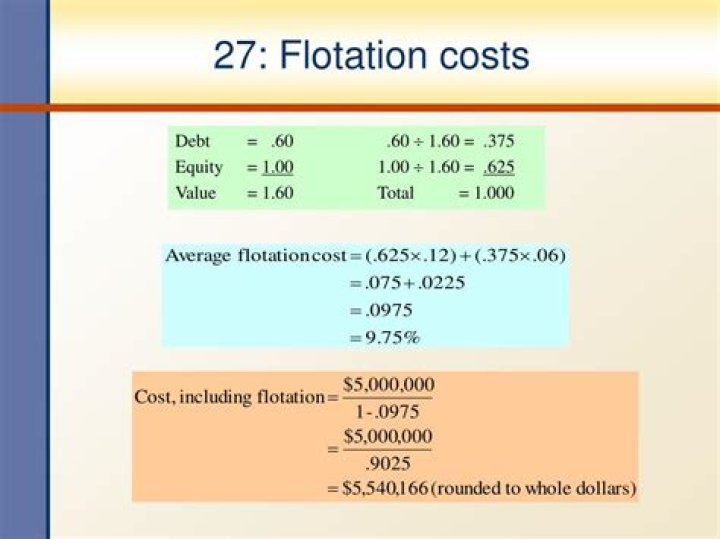 Flotation cost is generally less for debt and preferred issues, and most analysts ignore it while calculating the cost of capital. However, the flotation cost can be substantial for issue of common stock, and can go as high as 6-8%….Example.