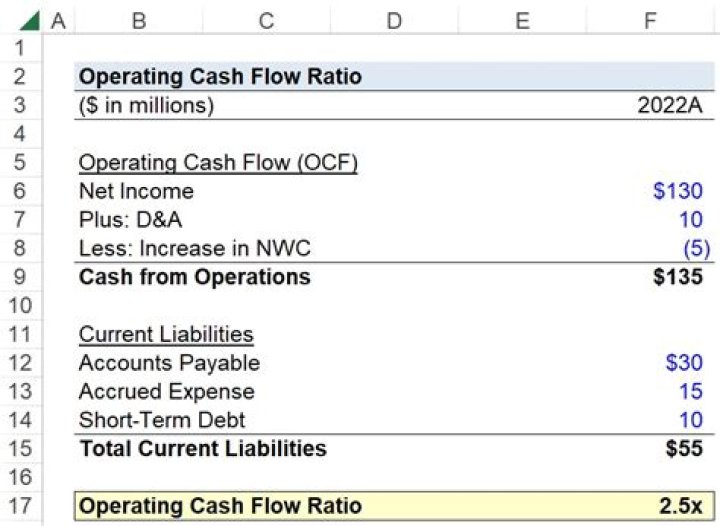 The operating cash flow ratio is a measure of how readily current liabilities are covered by the cash flows generated from a company’s operations. This ratio can help gauge a company’s liquidity in the short term.