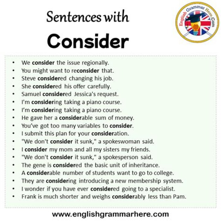 ing.” If you want to use consider to refer to an opinion on something, use “to.”