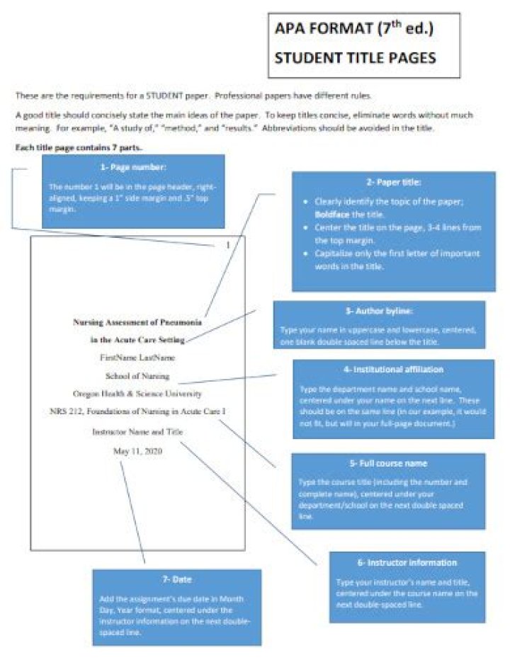 The title page should contain the title of the paper, the author’s name, and the institutional affiliation. A professional paper should also include the author note. A student paper should also include the course number and name, instructor name, and assignment due date.