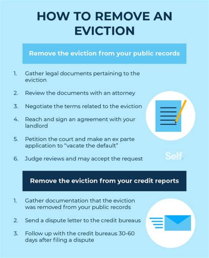 You can also remove evictions from your credit report by waiting for seven years and letting it lapse from your report and rental history. In certain states, you can possibly file for an expungement in order to remove such evictions from your records.