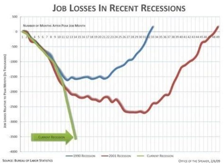 In the US, job losses have been going on since December 2007, and it accelerated drastically starting in September 2008 following the bankruptcy of Lehman Brothers. By February 2010, the American economy was reported to be more shaky than the economy of Canada.