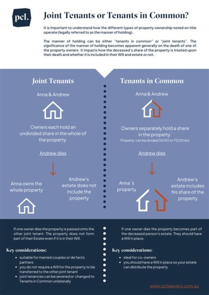 Those in a joint tenancy or a tenancy in common agreement have to follow a couple of the same rules, including: 1 All co-owners of a property must agree to sell that property 2 They both need a joint mortgage to secure a jointly owned property – although tenants in common do technically qualify… More …