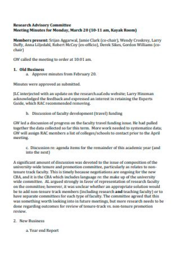 Minutes should be concise and summarize the major points of what happened at the meeting. There can be a lot of debate that happens at a meeting as people offer their opinions, research, and experience, which should not be recorded.