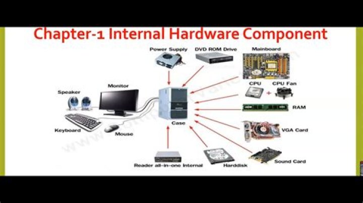 For example, hardware components such as motherboard, RAM and CPU are internal. Other examples of hardware include output devices such as printer and monitor. Input devices such as the keyboard and mouse. Also, secondary storage devices such as CD, DVD, hard disk, etc.