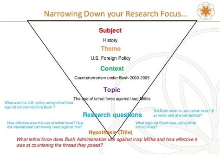 Narrowing Down Research Topic: Ultimate Guide With ExamplesChoose a general topic area. Give specific description of the topic area. Mention an aspect of the specific topic: Note down extra specifics about the topic. Turn the topic into a sentence or statement.