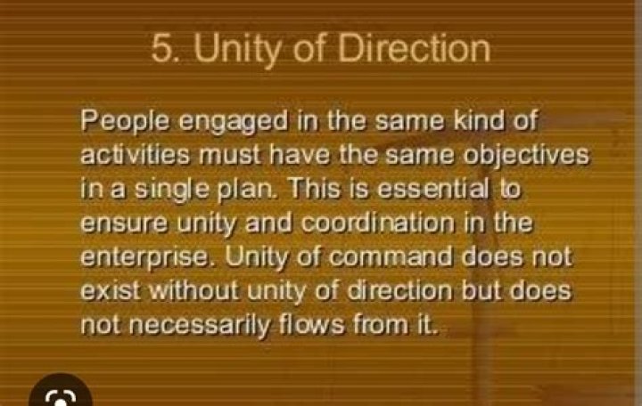 The principal of unity of direction is one of the 14 administrative principles developed by Henri Fayol. It is a concept found in administrative management theory. The principle provides that there should be only one leader and one plan for a series of activities seeking the accomplishment of the same objective.