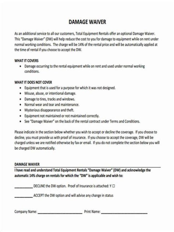 What is Damage Waiver on rental equipment?