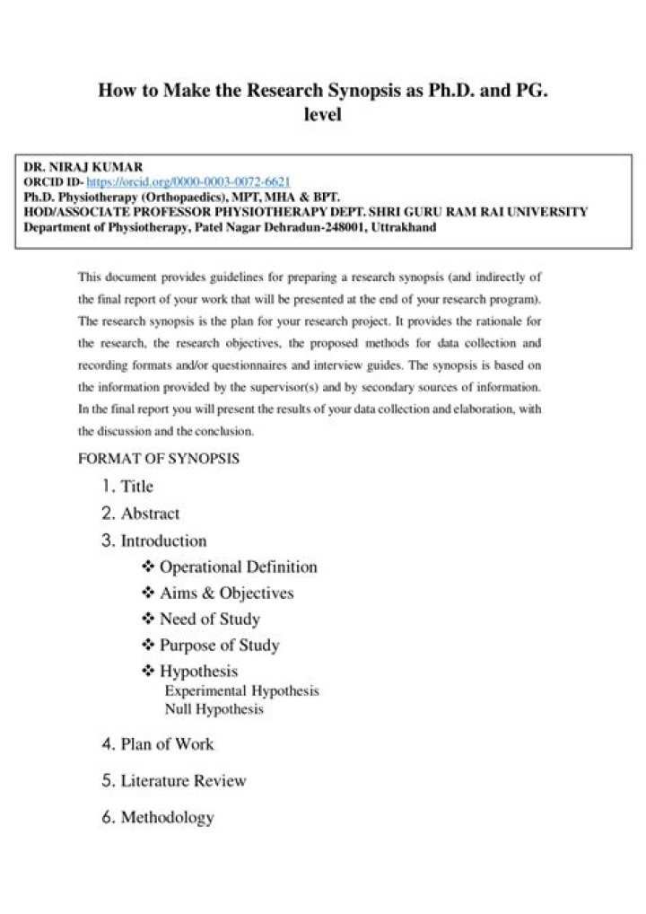 What is a synopsis in a research paper?