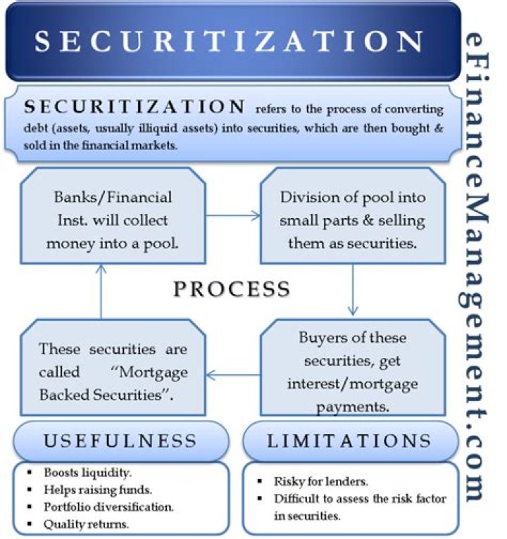 Banks may securitize debt for several reasons including risk management, balance sheet issues, greater leverage of capital, and in order to profit from origination fees. The bank then sells this group of repackaged assets to investors.