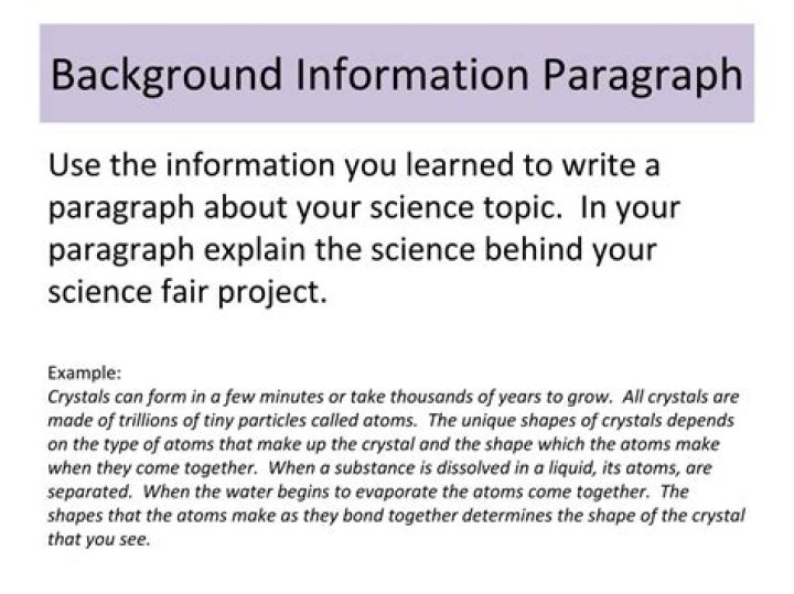 The purpose of background research for a science fair project is to explain what you already know and to find out what you don’t know. This will help you set up your project, develop a good hypothesis, and be able to explain your results (especially to science fair judges).
