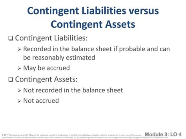 Contingent liabilities, liabilities that depend on the outcome of an uncertain event, must pass two thresholds before they can be reported in financial statements. If the contingent loss is remote, meaning it has less than a 50% chance of occurring, the liability should not be reflected on the balance sheet.