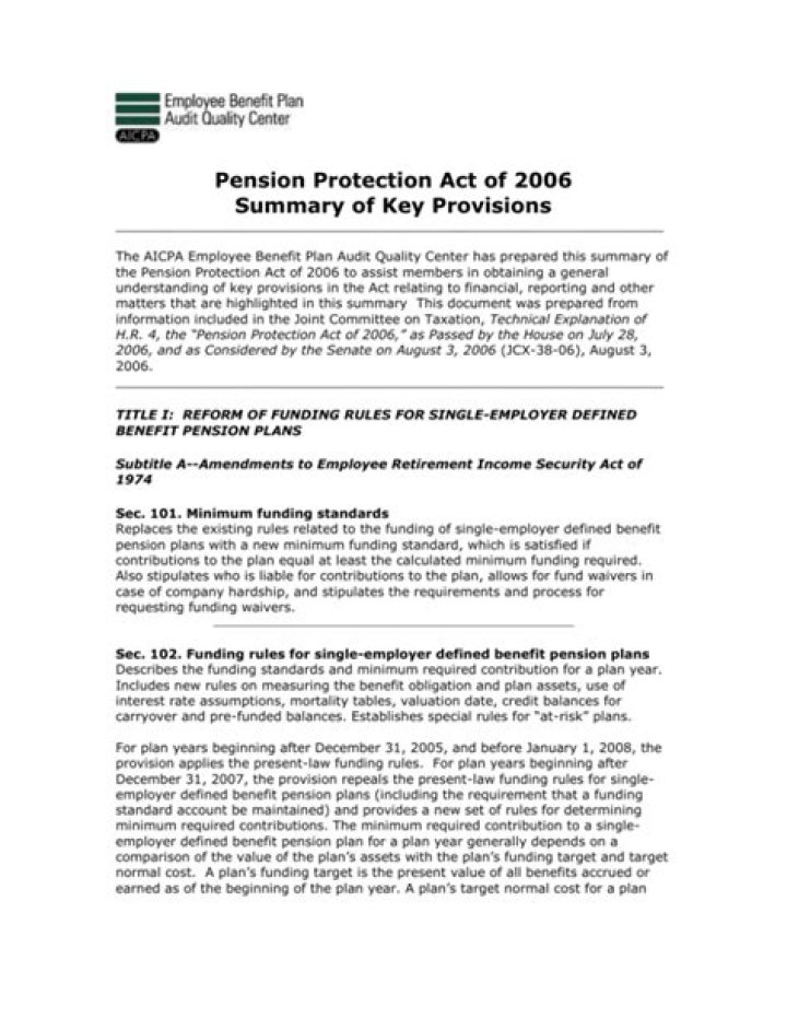 What are the key provisions of the Pension Protection Act of 2006?
