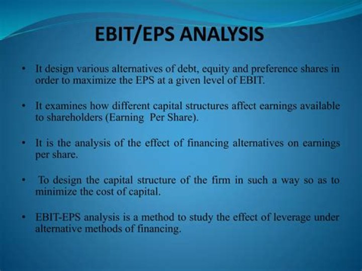 Concept of EBIT-EPS Analysis: EBIT-EPS analysis is used for making the choice of the combination and of the various sources. It helps select the alternative that yields the highest EPS. We know that a firm can finance its investment from various sources such as borrowed capital or equity capital.