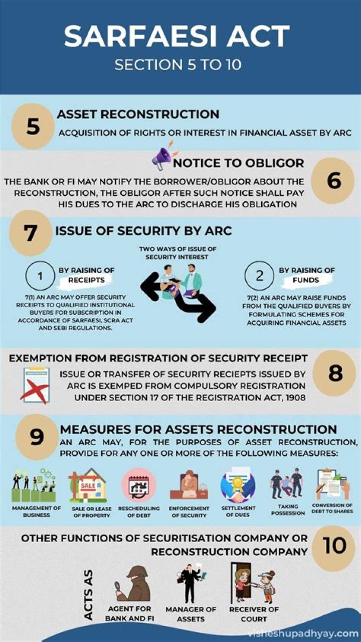 Securitization and Reconstruction of Financial Assets and Enforcement of Security Interest (SARFAESI) Act, 2002 is a legislation that aids financial institutions and banks to auction or sell both residential and commercial properties in order to recover bad loans.