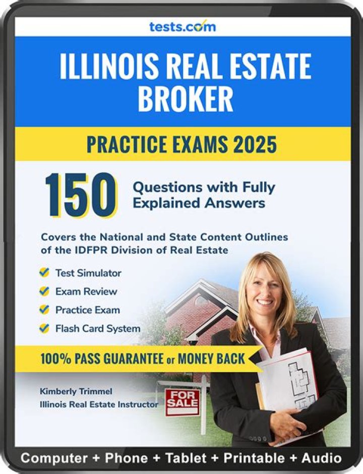 The Illinois Real Estate Exam contains 150 multiple-choice questions. 105 of these questions are national questions and 45 are state questions. You’ll have 3 ½ hours to complete the test, and a score of 75% is required to pass (results are provided immediately upon completion).