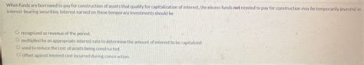 03. When funds are borrowed to pay for construction of assets that qualify for capitalization of interest, the excess funds not needed to pay for construction may be temporarily invested in interest bearing securities.