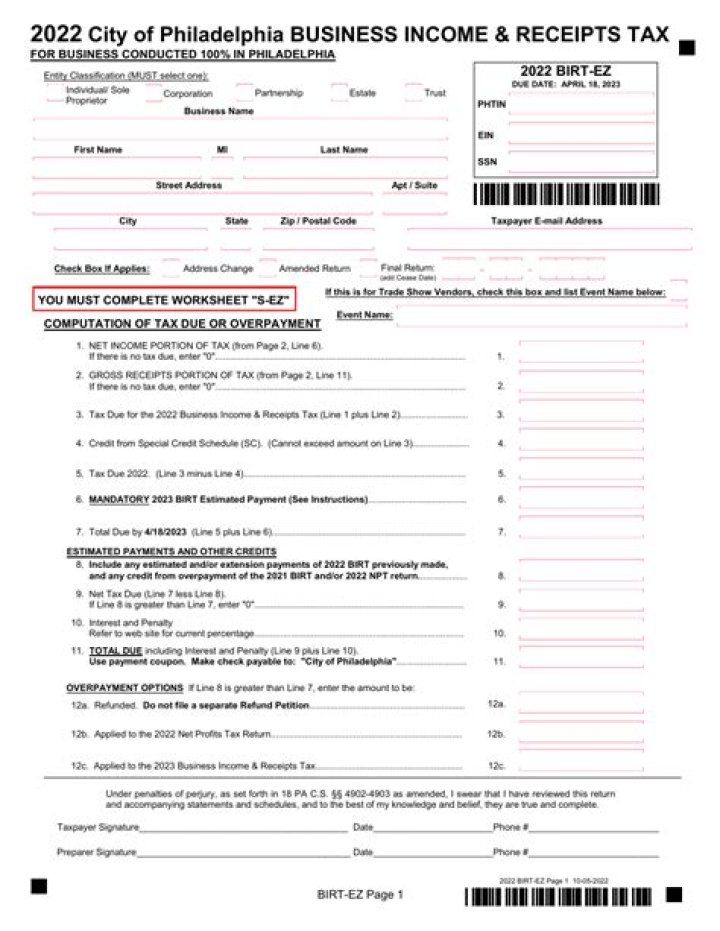 When to file a Birt return in Philadelphia?
