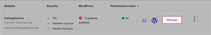 - Hover your cursor over the desired site slot and click MANAGE SITE.