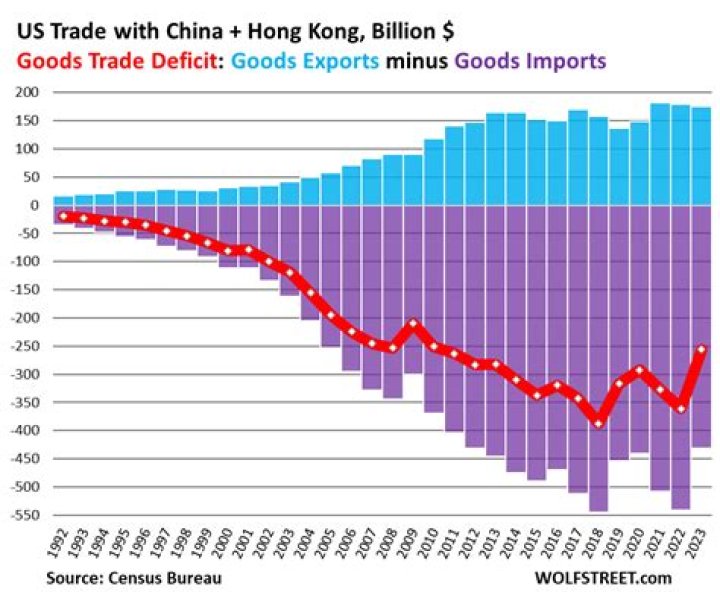 The trade imbalance with China increased more than 22% to $36.9 billion. The deficit with Mexico rose 23.5% to $8.4 billion.